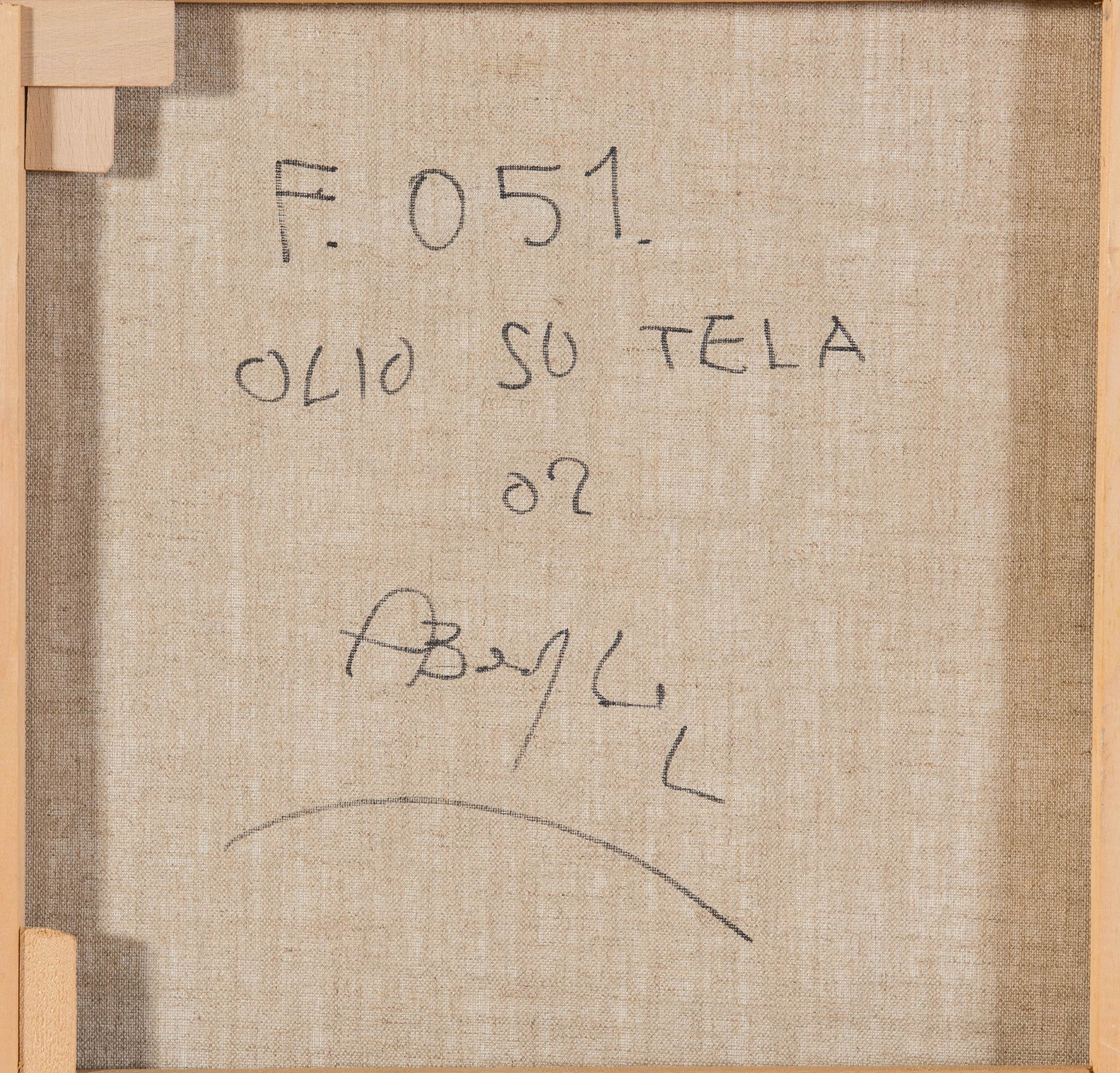 Olio su tela, firmato in basso a destra A Borghi, al retro reca titolo, tecnica, data e firma ‘F 051x/Olio su tela/02/A Borghi’, H cm 100x100