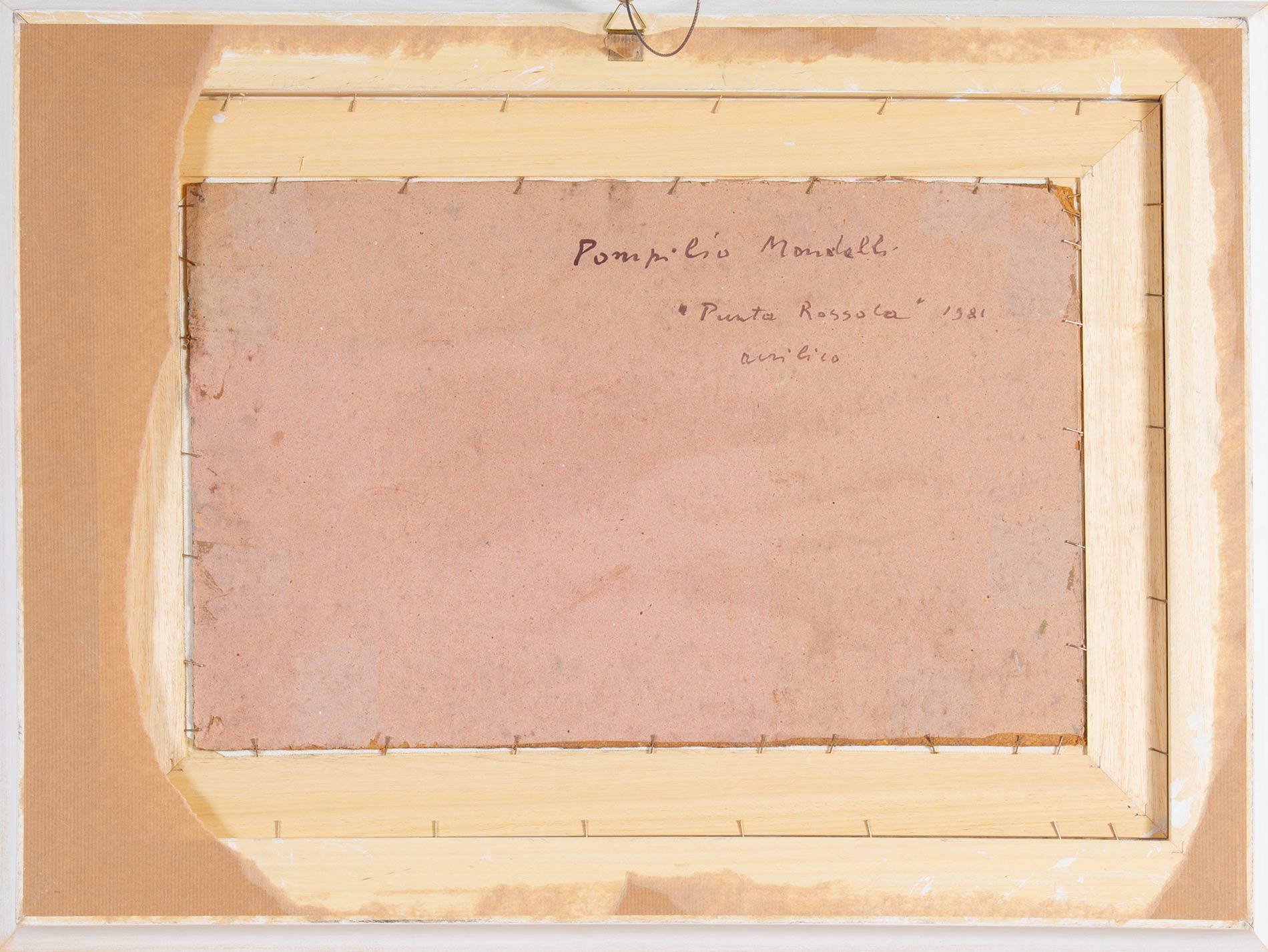 Acrilico su cartone, firmato in basso a destra Mandelli, al retro reca iscrizione ‘Pompilio Mandelli/”Punta Rossola” 1981/acrilico’, H cm 34x53