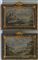 Ignoto "Paesaggi fluviali" coppia di acquerelli su carta applicati su tavola (cm 20x31) in cornici antiche laccate a finto marmo con cimasa e fregi dorati (difetti e restauri)