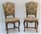 Coppia di sedie in noce con gambe mosse riunite da traverse, rivestite in velluto e seta. Secolo XVII (difetti)