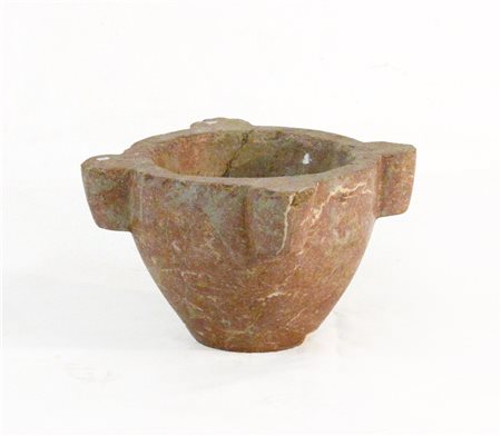 Antico mortaio quadriansato in marmo (cm 33x24x33) (difetti)