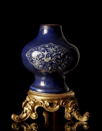A water pipe base with gilt decoration on a blue ground, gilt wood base (defects)
