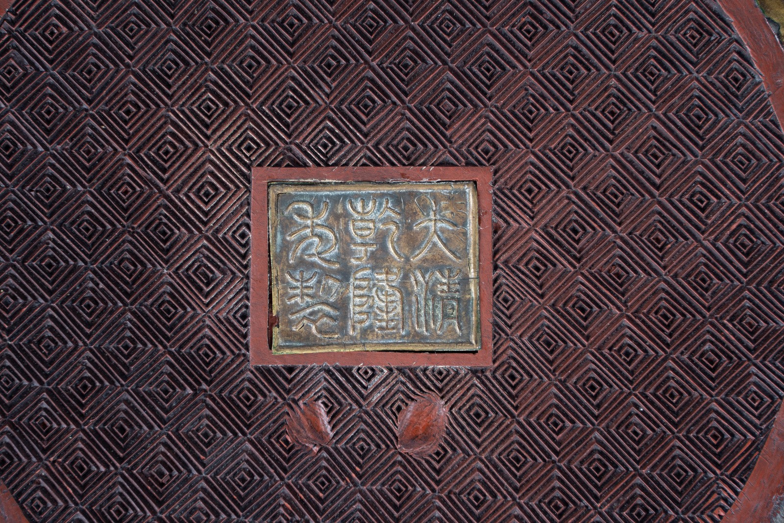 Chinese Art A pair of red lacqer dishes carved with courtly scenes and bearing a spurious Qianlong mark at the base China, Qing dynasty, 19th century . . Cm 22,00.