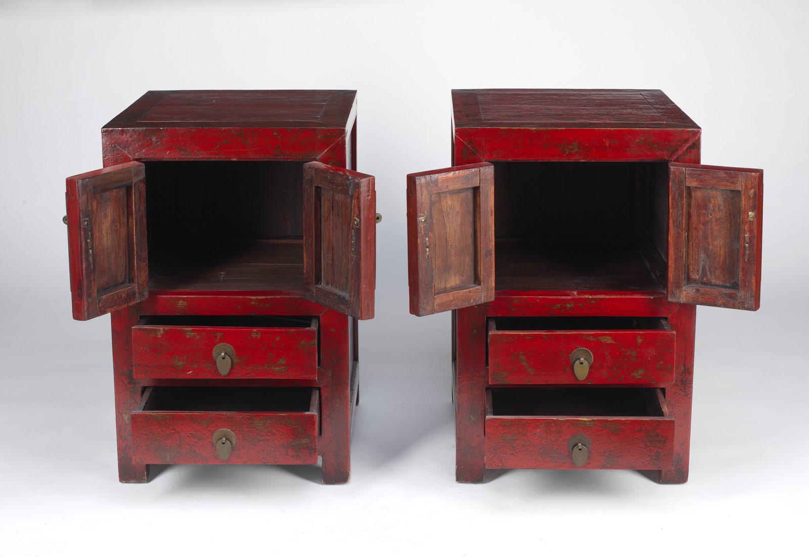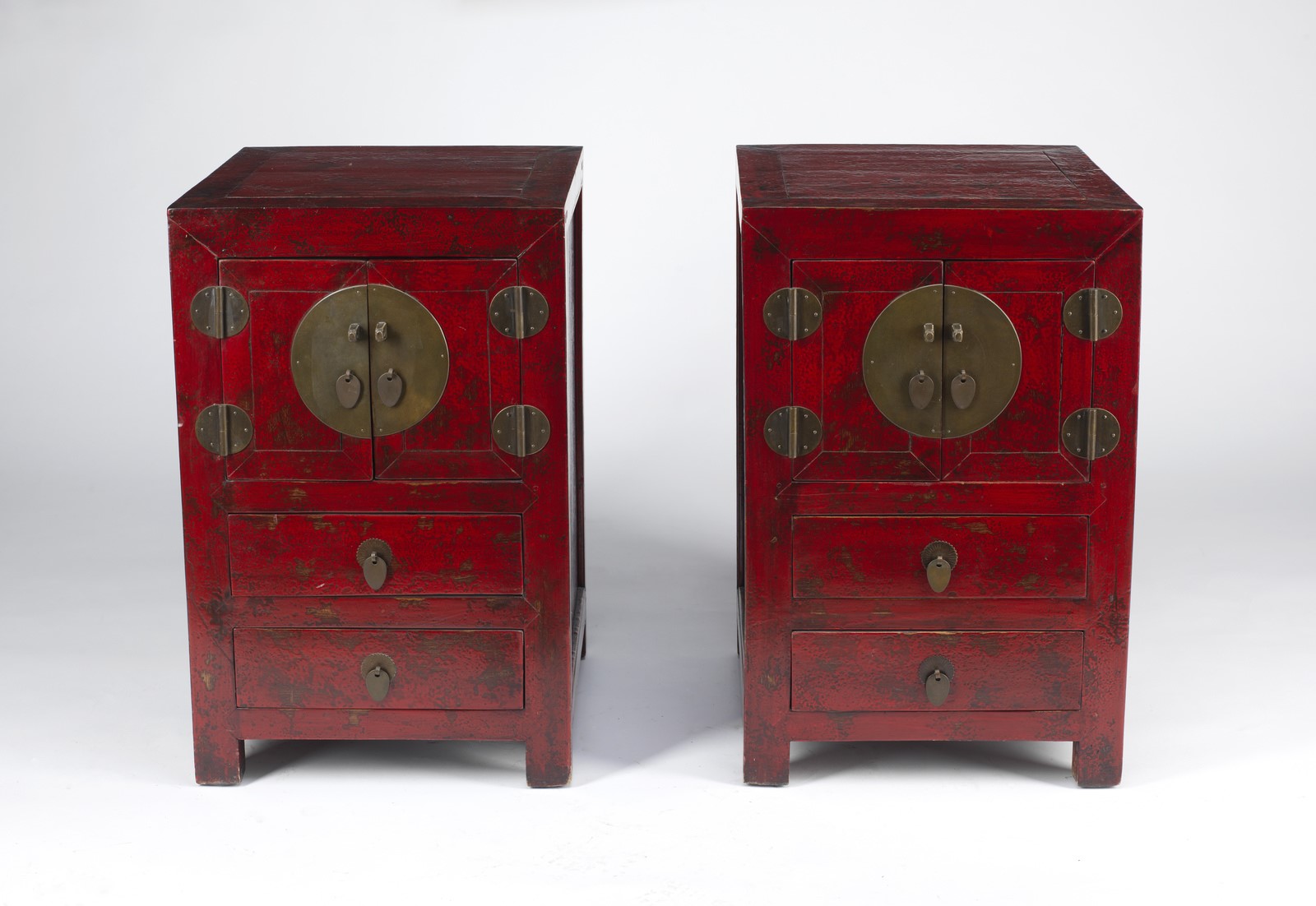 Chinese Art A pair of wooden lacquered night tables China, late 19th-20th century . . Cm 45,00 x 71,00 x 45,00. Provenance: Luigi Armondi Collection, Brescia.