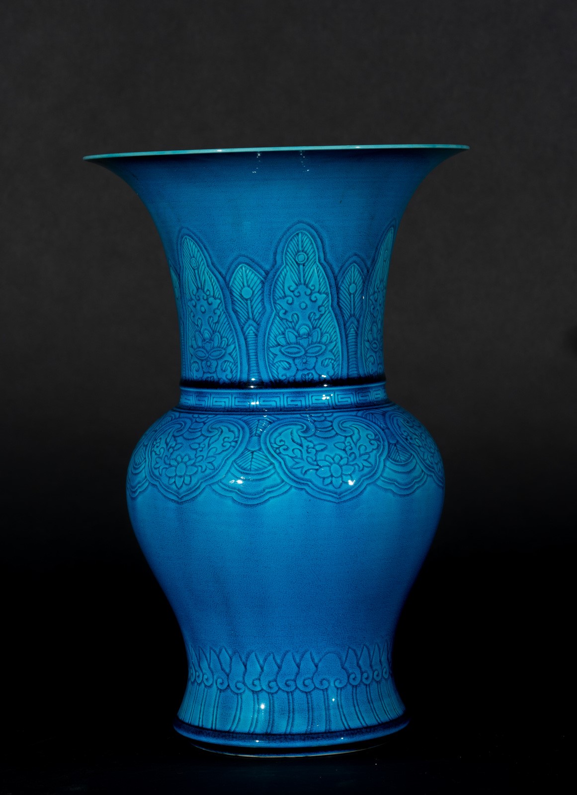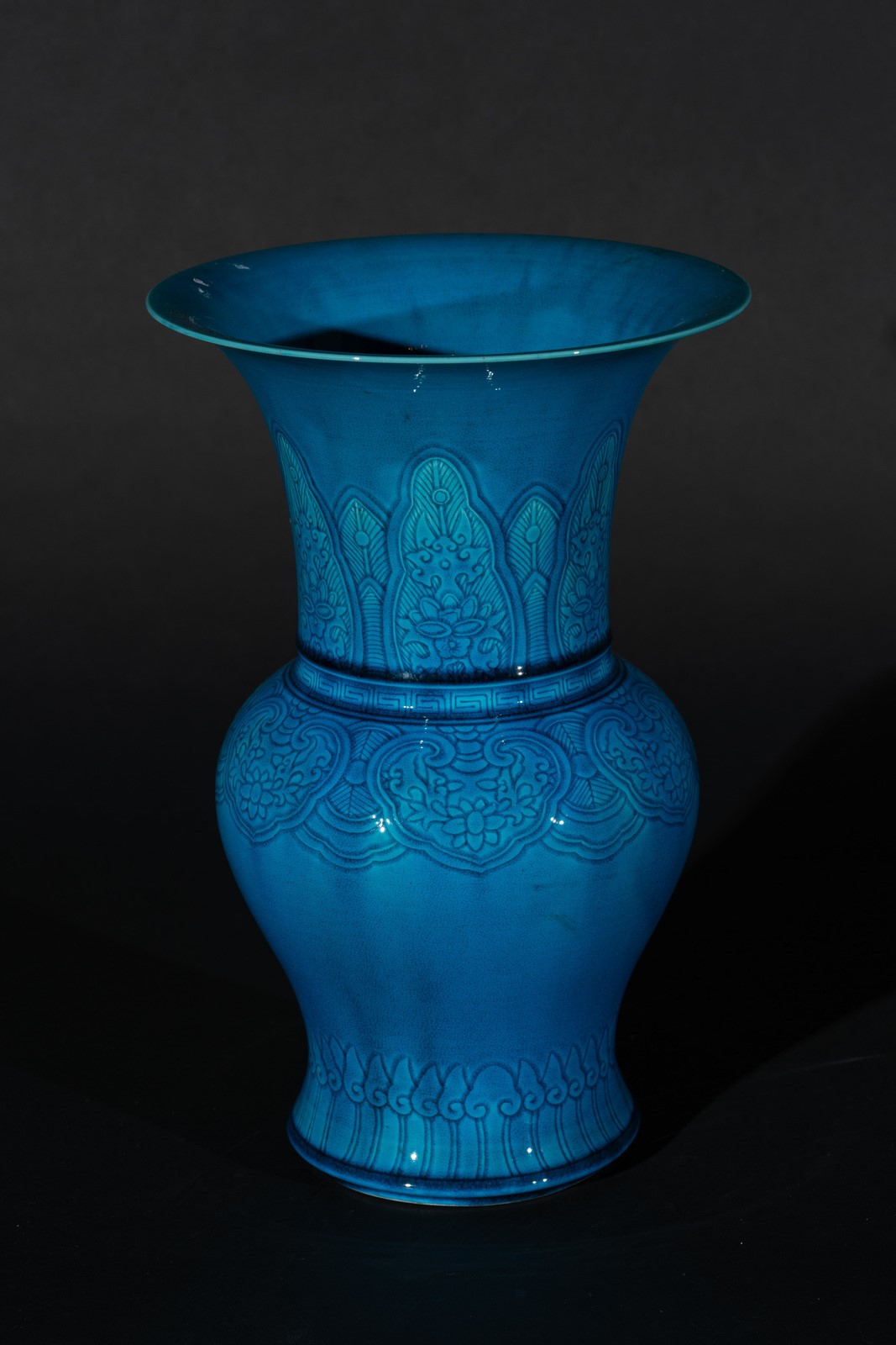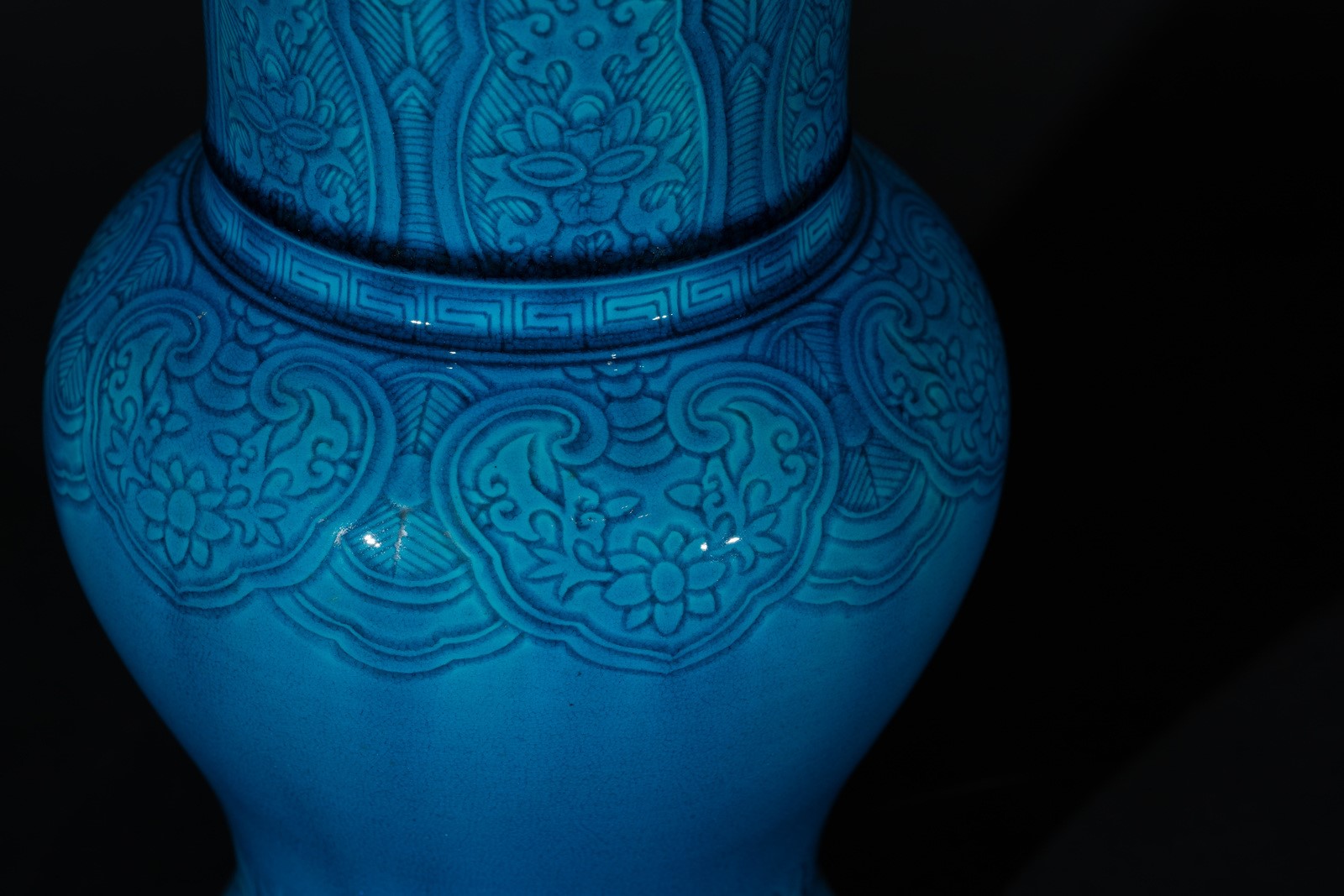 Lotto 236 | Arte Cinese A turquoise glazed baluster vase with engraved floral decoration China, 20th century .