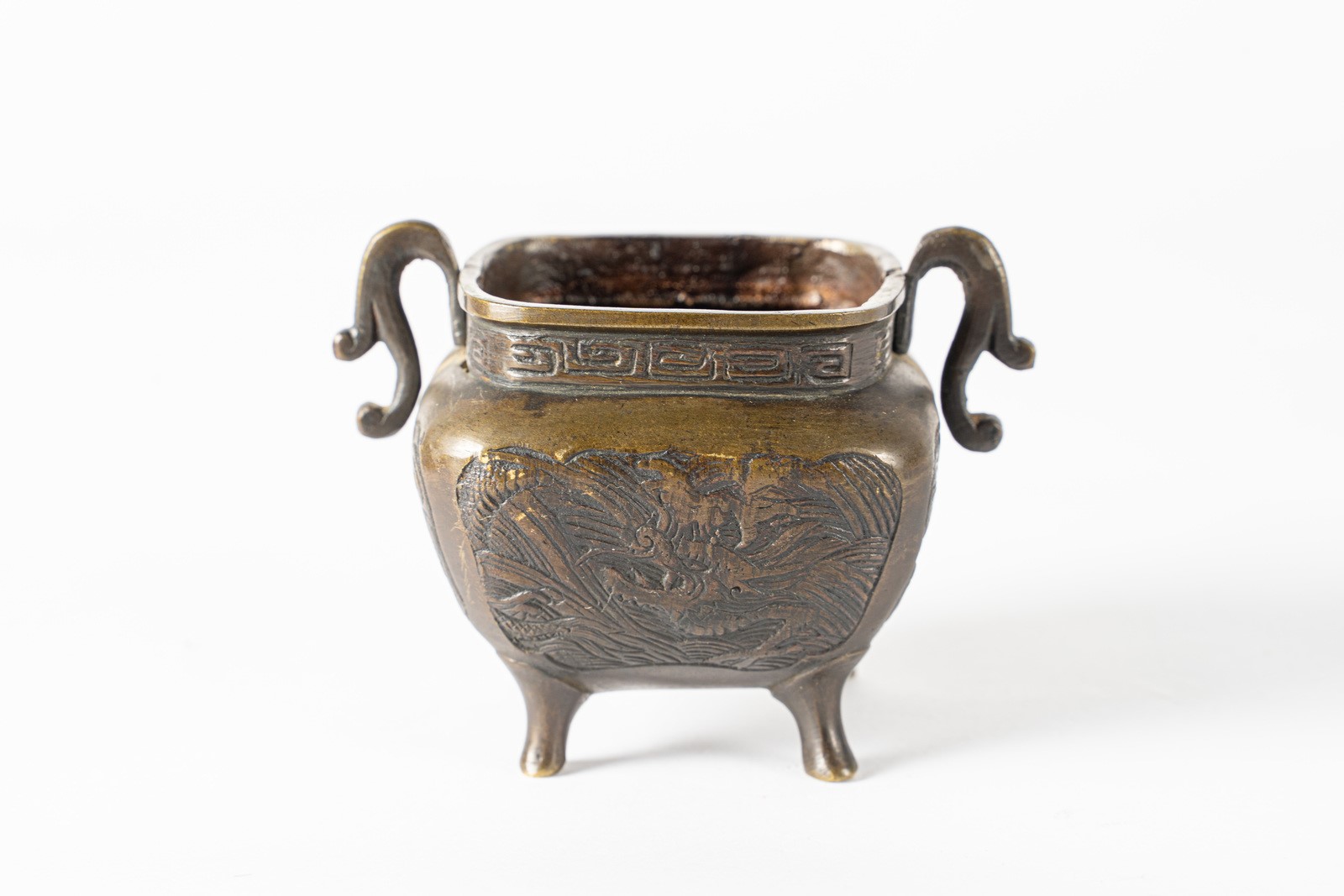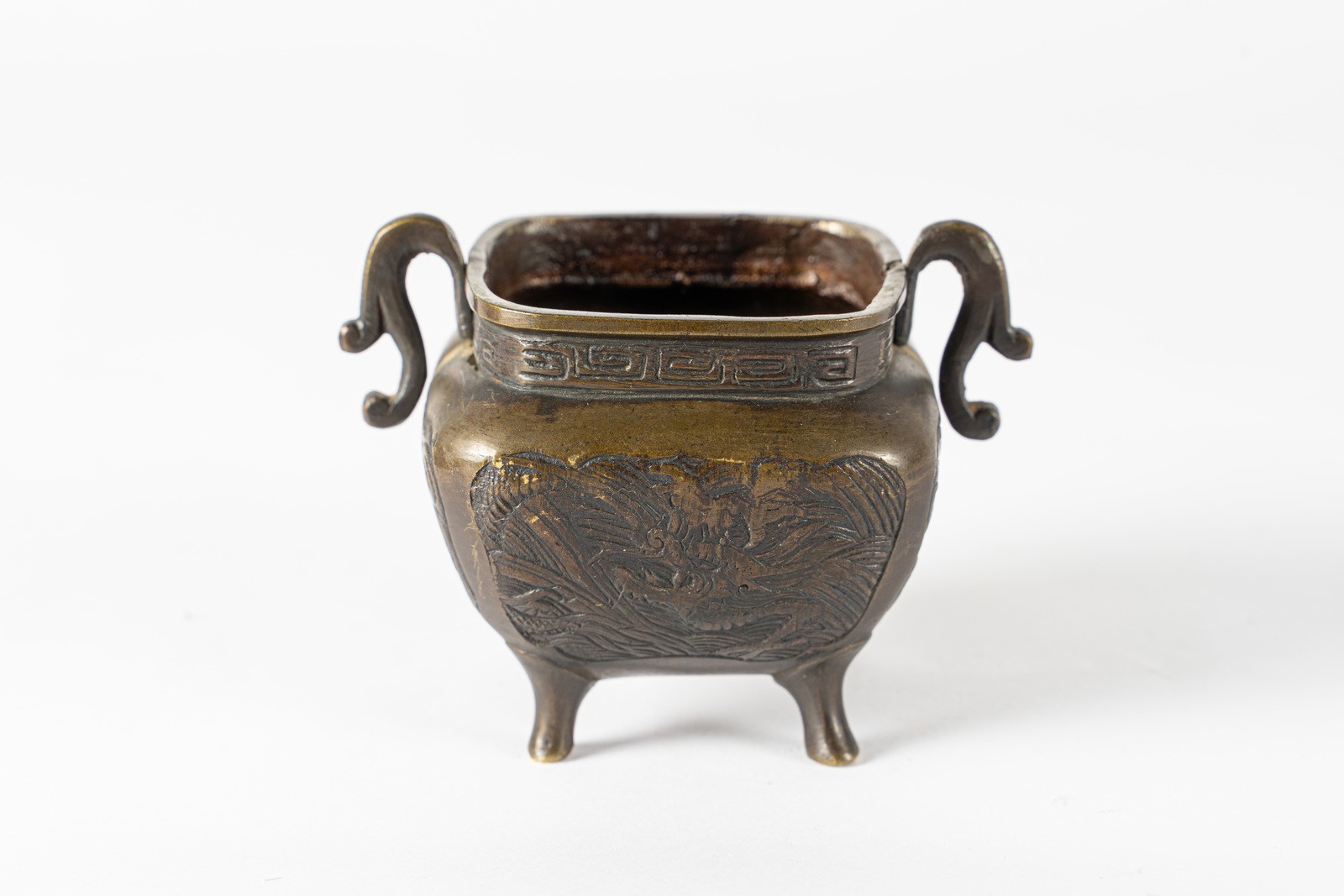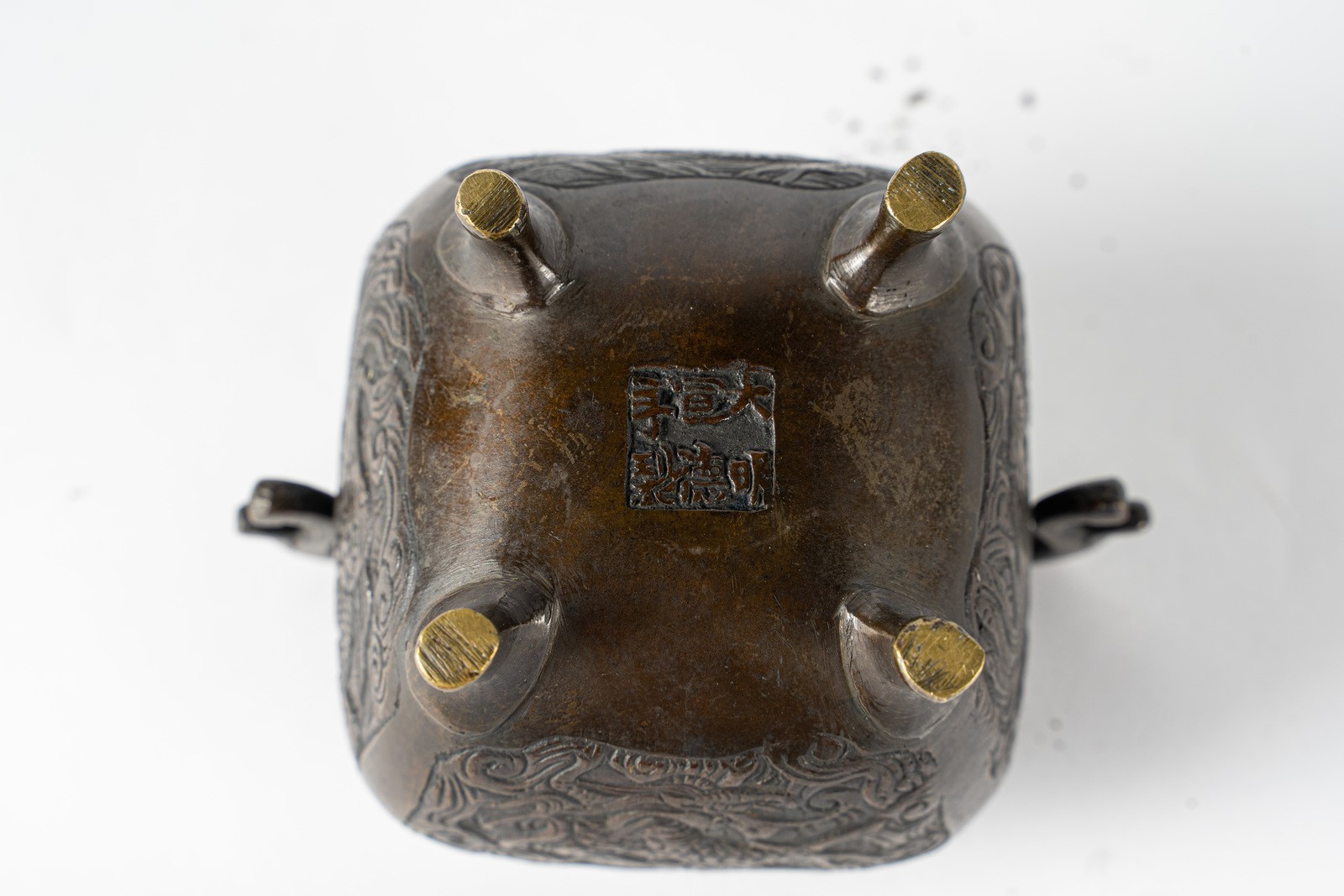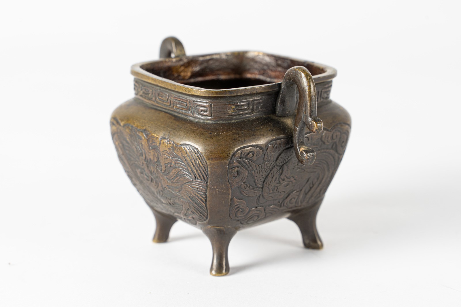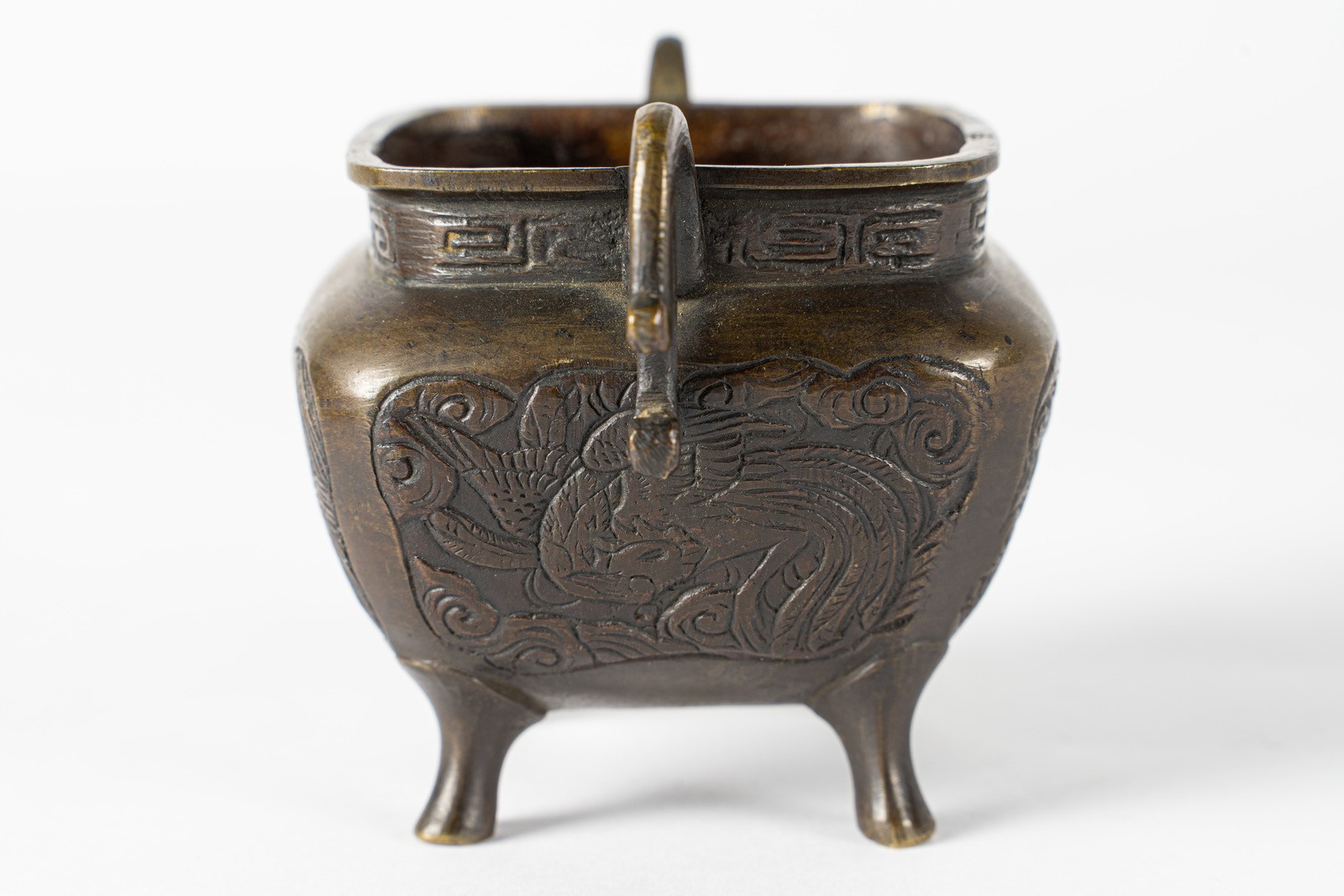 Arte Cinese A small bronze square censer China, Qing dynasty, 18th century .