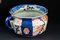 Chinese Art Three Imari porcelain vesselsChina. . Cm 35,00 x 5,00. A floral painted dish (h 5cm X diam. 35 cm). Restoration on the edge.A faceted vase bearing a four character mark at the base (h 13, 5 cm l 25,5 cm).A bowl decorated with flowers vases within reserves (15cm h 7 cm).