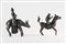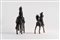Chinese Art Two cast dark bronze figures depicting characters riding a horseChina, Qing dinasty, 19th century . . Cm 18,50 x 22,00.