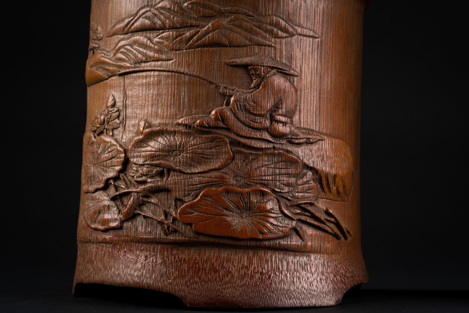 Chinese Art Two cylindrical bamboo wooden brushpots (Bitong)China, early 20th century. . Cm 13,00 x 15,00.