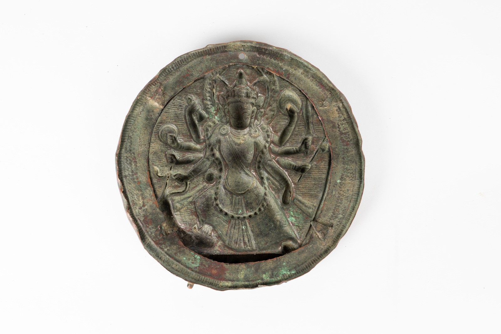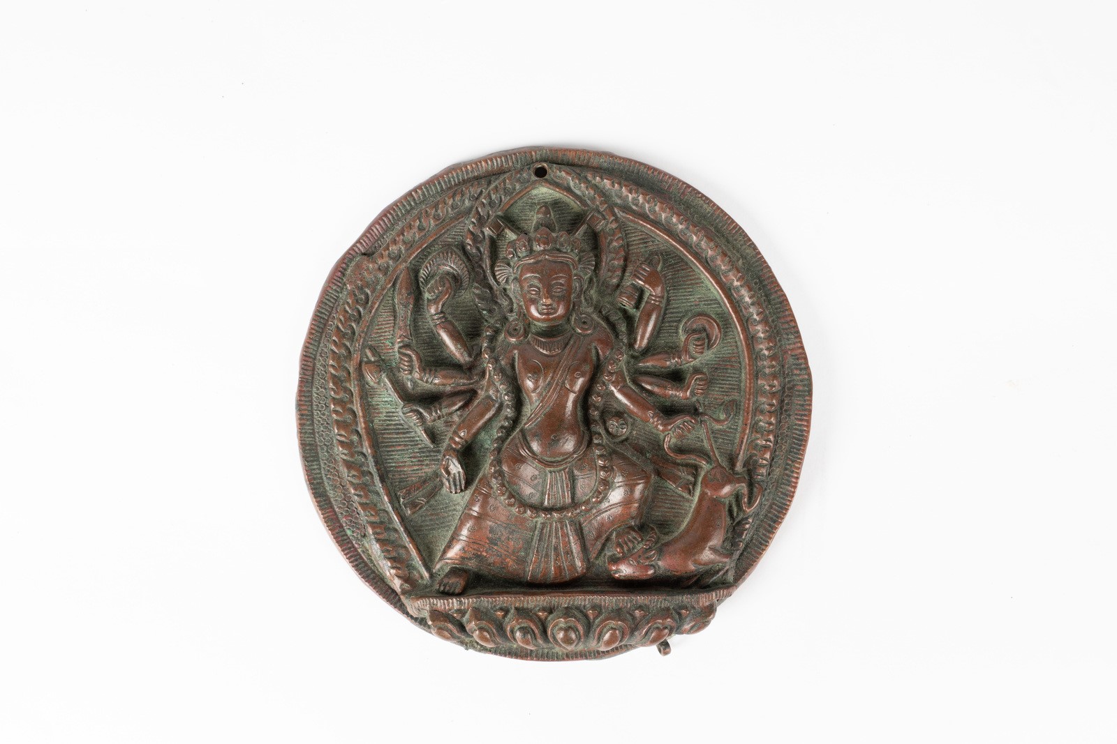 Himalayan Art An embossed copper plaque depicting Durga Nepal, late 19th century . . Cm 15,00.