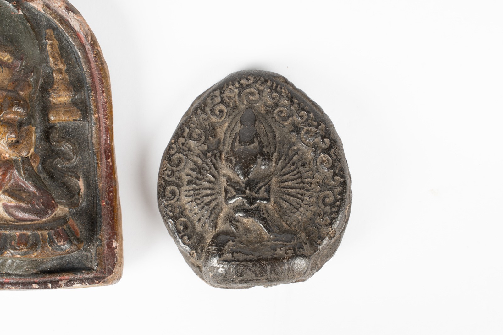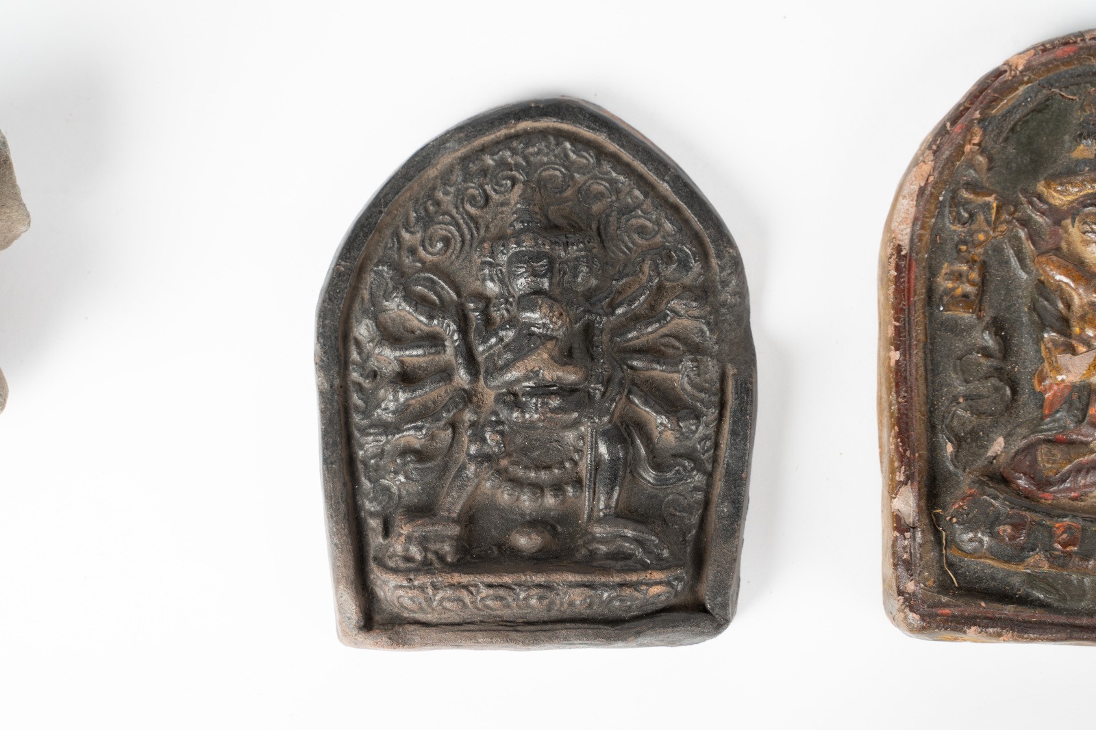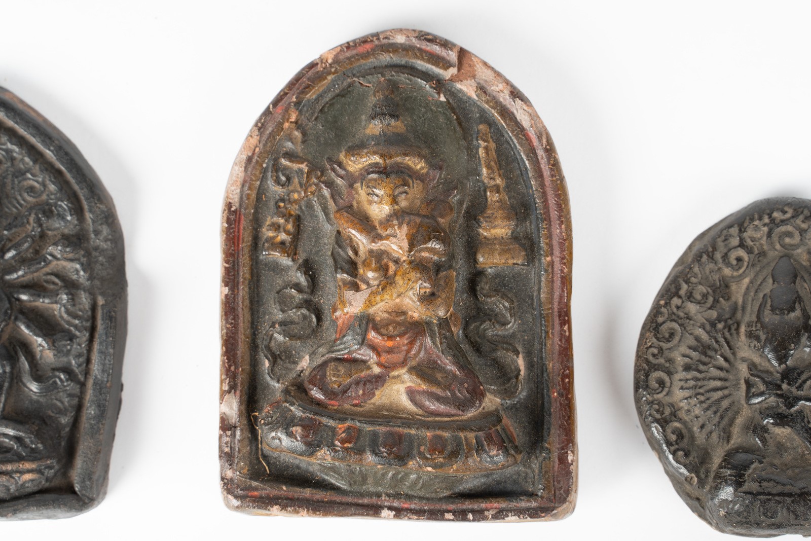 Himalayan Art A collection of three tza tza Nepal or Tibet, 19th century . . Cm 8,50 x 12,00.