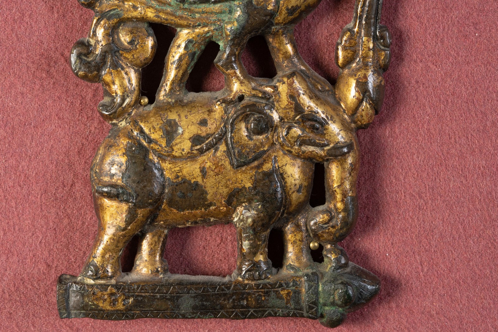Himalayan Art A gilded copper frieze Tibet, 17th century . . Cm 22,00 x 46,00. Provenance: Ex Alfio Nicolosi collection.