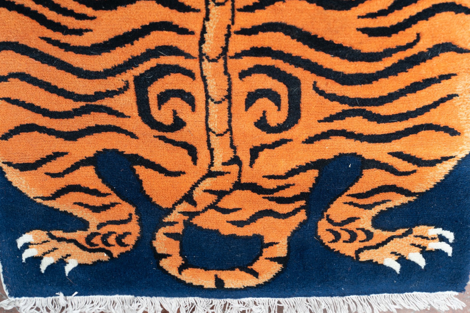 Himalayan Art A carpet with tiger Tibet, second half 20th century . . Cm 172,00 x 85,00.