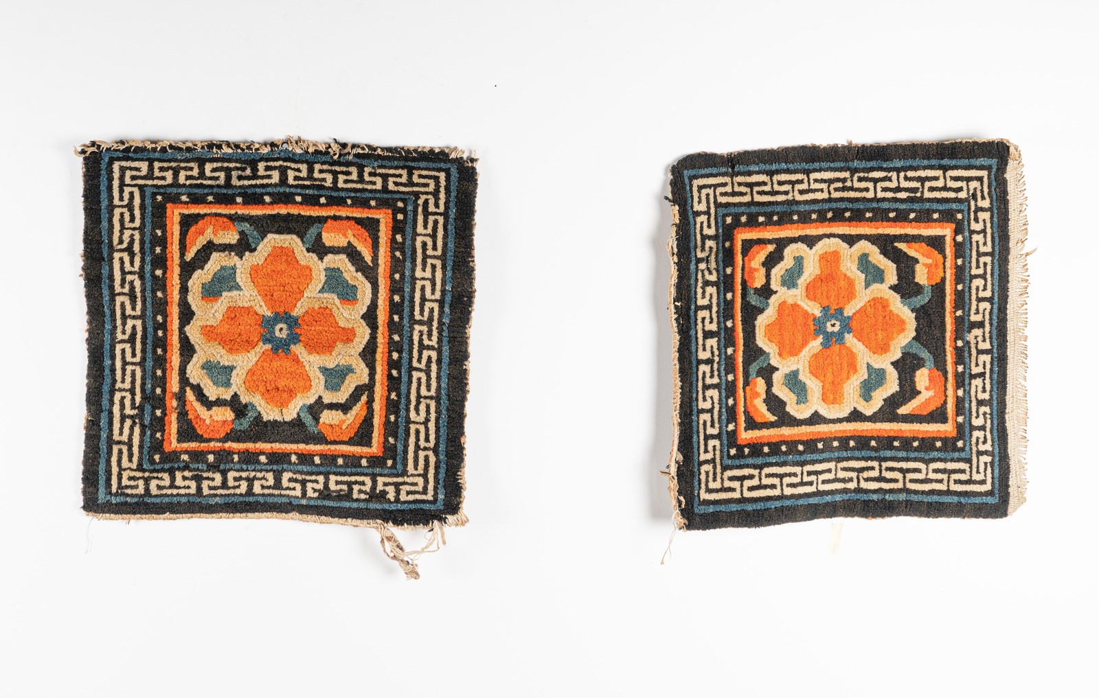 Himalayan Art A pair of carpets depicting lotus flowers Tibet, early 20th century . . Cm 48,00 x 48,00.