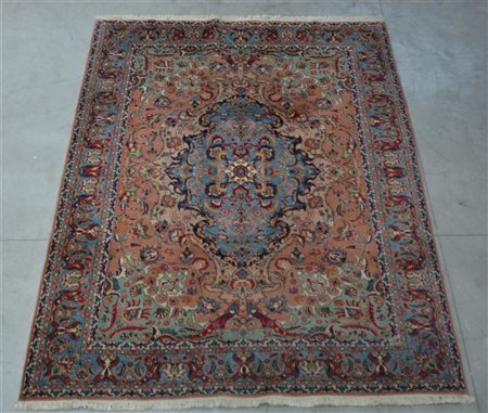 Tappeto Tabriz, Persia, secolo XX. Decoro a medaglione azzurro su fondo nocciol