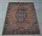 Decoro a medaglione azzurro su fondo nocciola. Bordura Herati su fondo azzurro. (cm 334x240) (difetti)