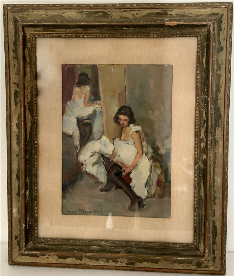 Carlo Cherubini "Due ballerine" olio su tela (cm 32x23) Firmato in basso a sinis