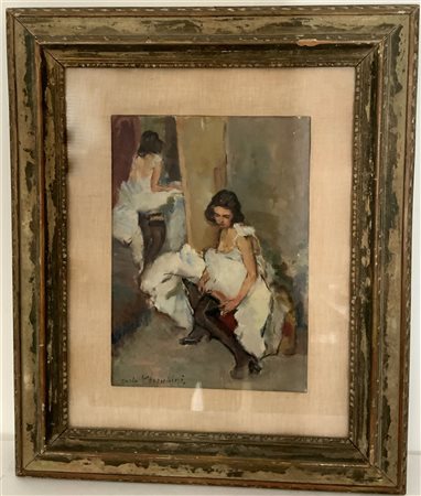 "Due ballerine" olio su tela (cm 32x23) Firmato in basso a sinistra. In cornice