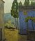 Emanuele Cavalli (Lucerno, 1904 - Firenze, 1981) La Casa azzurra Olio su compensato, cm. 59x50 Firma in basso a destra. Sul Verso: etichetta XIX Biennale Internazionale d'Arte, Premio IL Fiorino, Palazzo Strozzi, 3 maggio-15 giugno 1969.