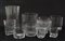Gruppo di nove vasi in vetro trasparente incolore di forme e dimensioni differe