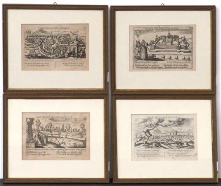 Gruppo di quattro antiche incisioni raffiguranti città fortificate (cm 11x16) I