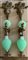 Coppia di appliques in bronzo ad una fiamma decorate a teste di ariete e in opaline con pigna (h. cm 65) (difetti)
