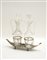 Porta-cruet a barca in argento con anse stilizzate e piedi ferini. Marchio di N