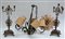 Lotto composto da una coppia di candelabri a quattro fiamme in metallo su basi