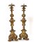 Coppia di candelieri tripodi in legno intagliato, dorato e laccato, secolo XVII