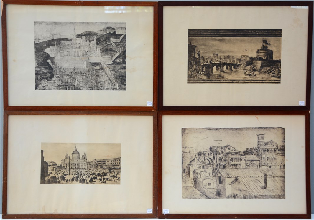 Lotto 1535 | Gruppo di sette stampe di misure diverse raffiguranti vedute romane. In cornici