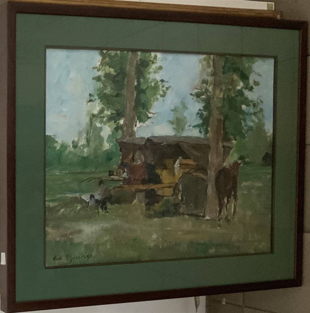 "Paesaggi con figure" coppia di dipinti a olio (cm 44x55) Firmati in basso. In cornici