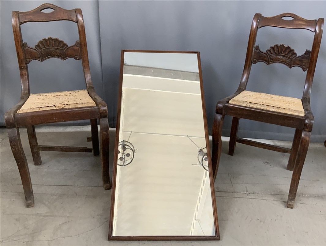 Lotto composto da due sedie antiche con sedute in paglia e uno specchio (difett