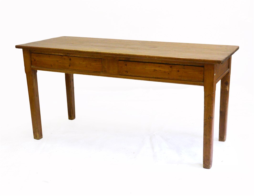 Lotto 1552 | Tavolo rettangolare in legno dolce con due cassetti nella fascia (cm 160x77x62)