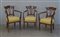 Gruppo di tre poltrone con schienale a giorno sagomato, braccioli curvi e gambe mosse. Secolo XIX