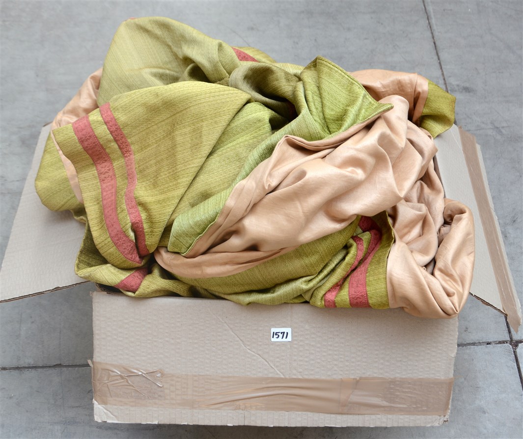 Cartone contenente due copriletti in tessuto verde (difetti)