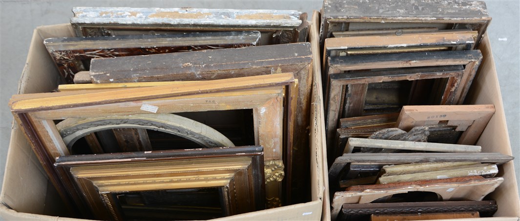 Lotto composto da due cartoni contenenti numerose cornici di dimensioni ed epoche diverse (difetti e mancanze)