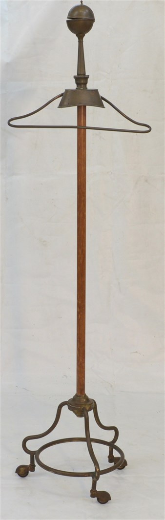 Servomuto in ottone e legno munito di rotelle. Prima metà secolo XX (h. cm 150) (difetti)