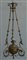 Lampadario in bronzo di forma di forma globulare decorato in rilievo e traforat