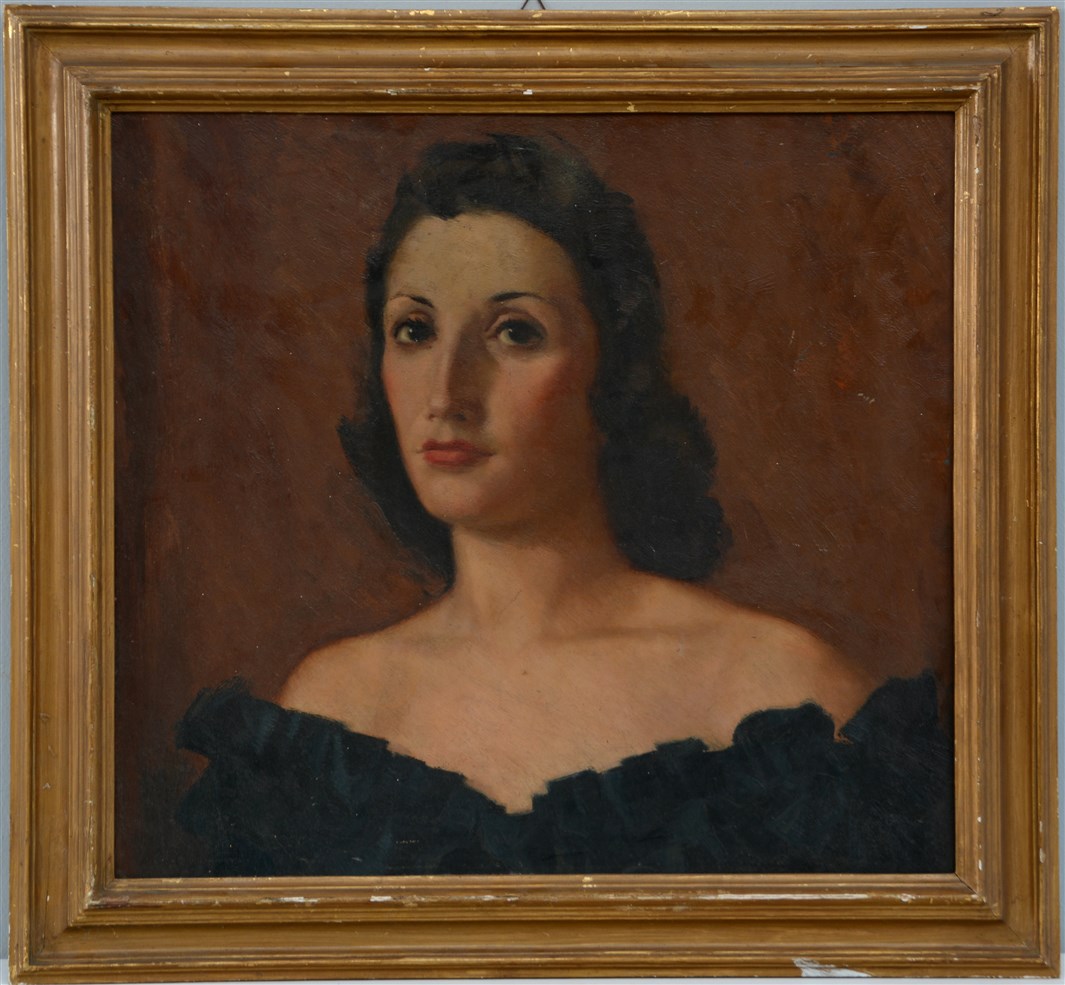Lotto 1589 | Ignoto "Ritratto di signora in abito nero" olio su compensato (cm 50x56) in cor