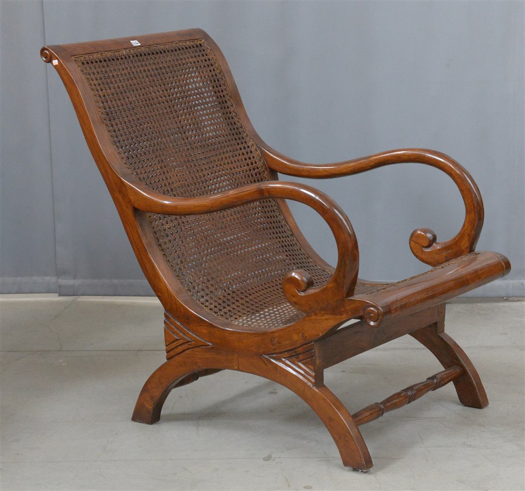 Poltrona con braccioli curvi e traverse tornite, seduta e schienale in cannettè