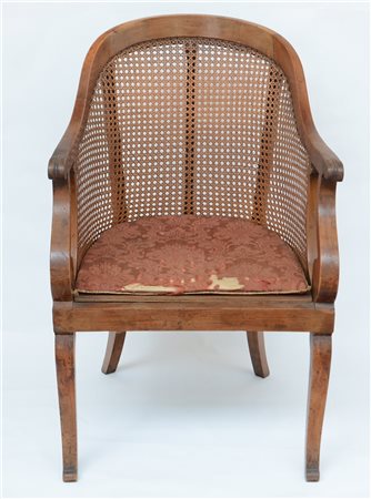 Poltrona in noce con schienale e braccioli mossi. Secolo XIX (difetti)