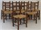 Gruppo di otto sedie con montanti e gambe squadrate, sedili impagliati (difetti