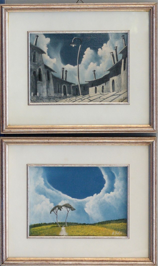 Firma indecifrata, due dipinti ad olio su tavola raffiguranti una scorcio di pa