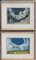 Firma indecifrata, due dipinti ad olio su tavola raffiguranti una scorcio di paese e un paesaggio (cm 14x19) in cornici