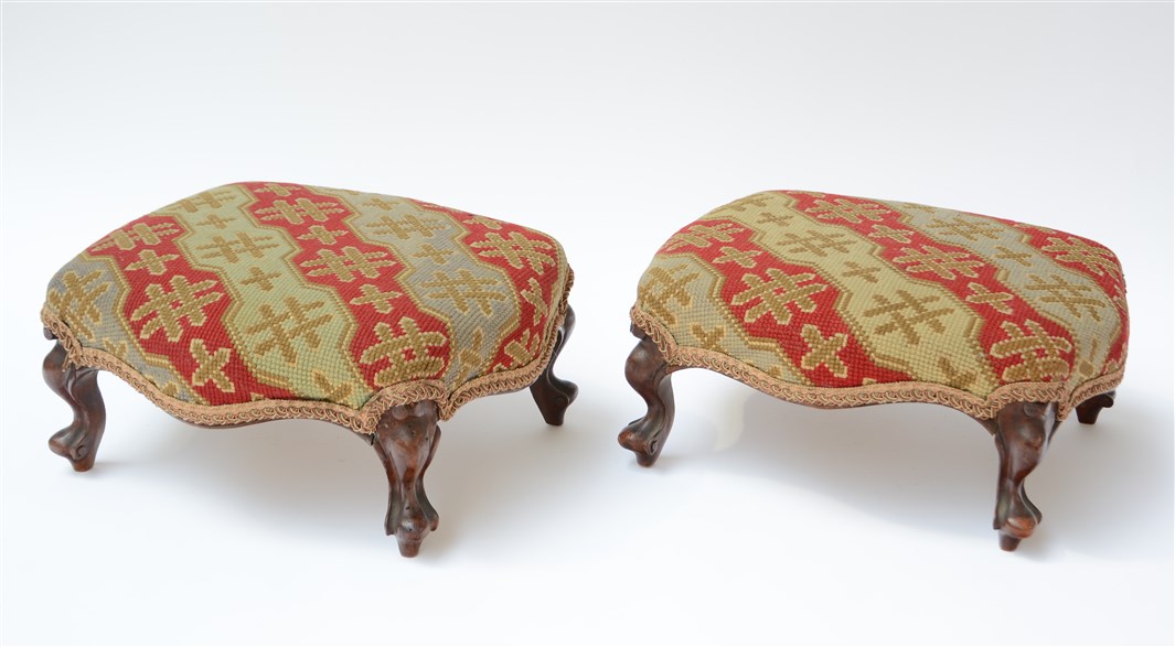 Coppia di poggiapiedi del secolo XIX, rivestiti con tessuto a piccolo punto (di