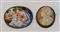 Lotto composto da placca in ceramica dipinta raffigurante la Sacra Famiglia e un cammeo montato a spilla (difetti)