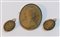 Demi-parure composta da spilla ed orecchini in metallo con cammei in pietra lavica (difetti)