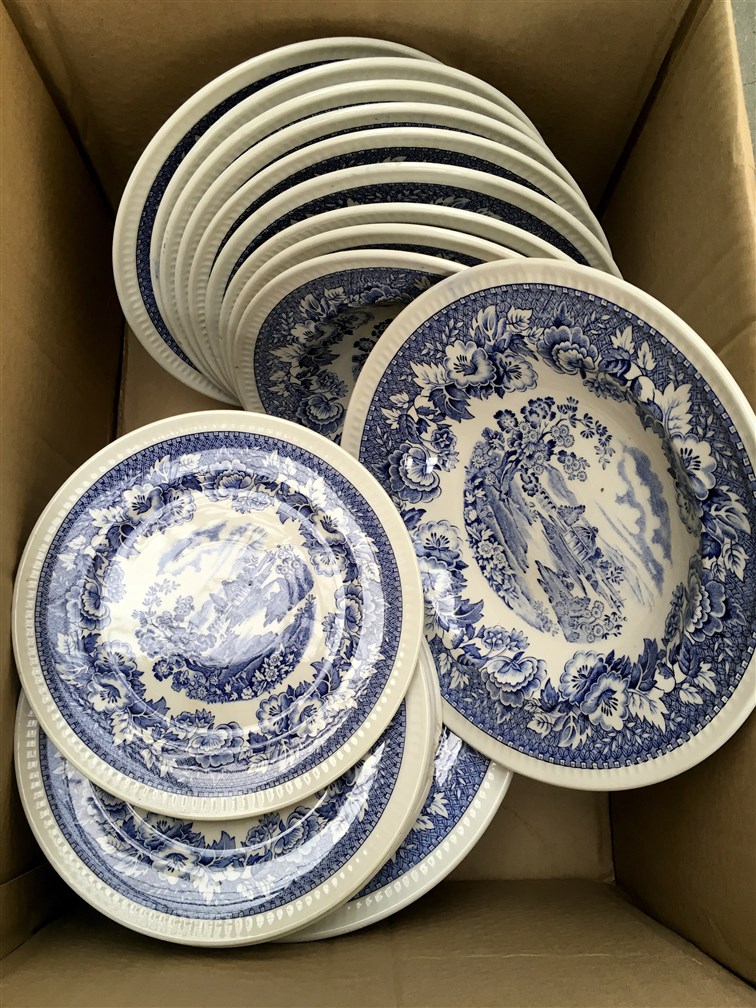 Cartone contenente una parte di servizio di piatti di manifattura inglese (difetti)