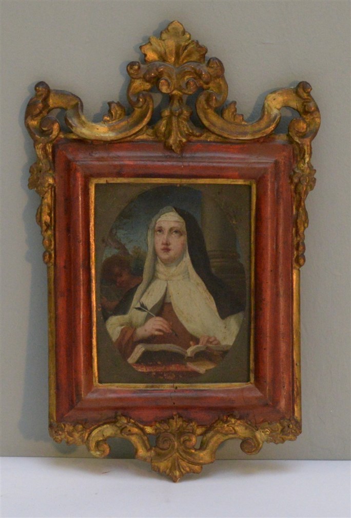 Artista di fine secolo XVIII, ''Santa Teresa d'Avila'', olio su rame (cm 14x11), in cornice antica (difetti)