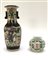 Vaso e piccola potiche in porcellana policroma decorati con figure motivi vari (h. max cm. 25) (difetti)